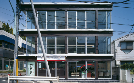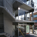 都市計画の計画道路にまたがる敷地に建てた商業テナントビル。計画道路上を木造・道路外をRC造とした平面混構造建物として設計し、道路に沿った集成材の木造軸組がそのまま商業ビルのファサードとなるようにデザインした。このファサードに現した集成材は燃え代計算により耐火性能を確保している。現代日本の都市の中層建築がつくるロードサイドの建物ファサードに、柱・梁といった建築の根源的な要素に新しい木質感を取り込む試みを行った建物。